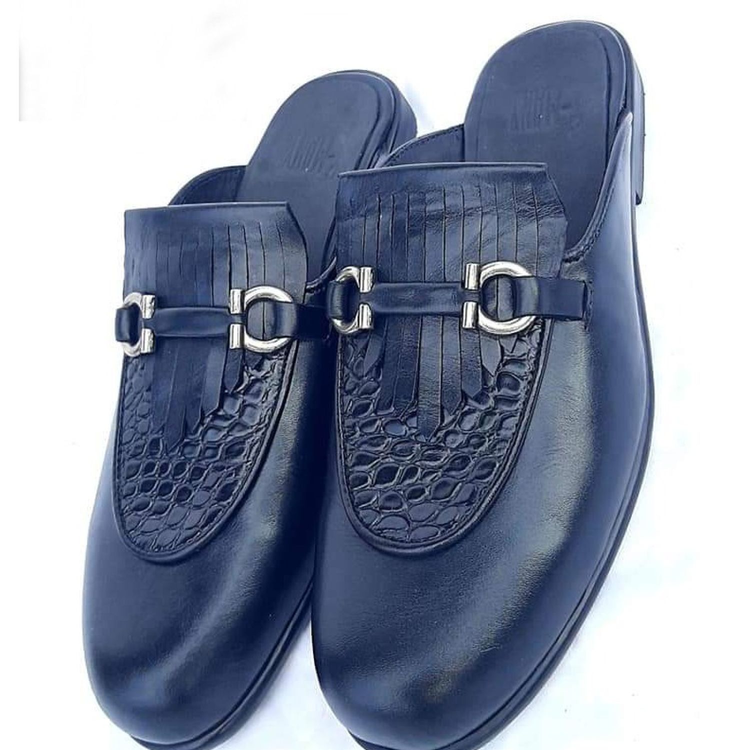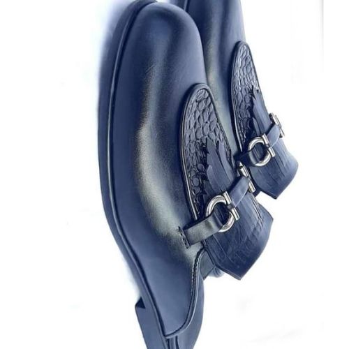 Open men's shoe in black leather.